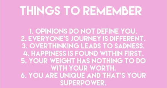 Comparisons are easily done but it is all about changing our mindset. I often used to compare my athletic and curvy frame with that of Instagram models who are much slimmer and also, being entirely honest, I'd compare myself to many of my friends who are naturally much smaller in height as well as body size, who are nothing like me! Even if I had wanted to, this could not be me and why is it now that I am only finally realising it is not a realistic goal to compare myself and dishearten myself based on something I will never be? As a result of this sudden epiphany, I (by no means am fully confident yet in myself) will continue to grow and learn to be happy with my body and looks, remembering each time I go to compare myself with another, that actually that person too probably compares their body to someone else and has their own insecurities, therefore reflecting that nobody is "perfect" and that I must remember that self worth comes from within & my happiness can only depend on my reaction to my own image - something that will really improve my mental health too.